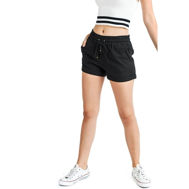 Love Tree Women S Juniors Casual Relax Fit Linen Shorts Black S Walmart Com